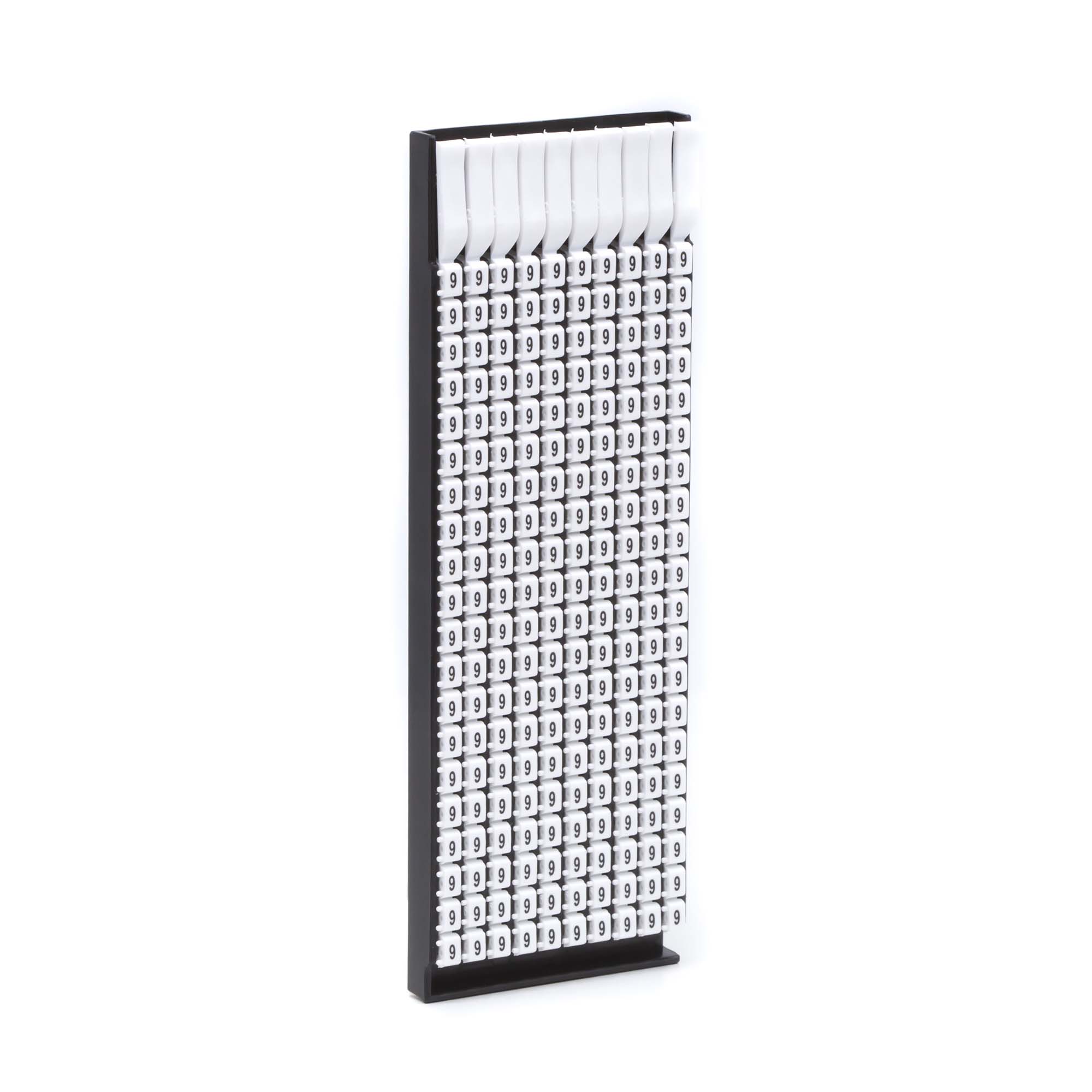 Ручная маркировка системы MARK 3 для маркировки проводов без разъединения электрической цепи из полиамида 6.6. Температура эксплуатации от –40 до +100 °С. Боковые штифты надежно фиксируют соединение друг с другом и позволяют добиться точного выравнивания маркеров. Цвет маркеров соответствует международной кодировке. Символ "9" черным цветом на белом маркере для сечения провода 1.5-2.5 мм2. 200 маркеров в упаковке.