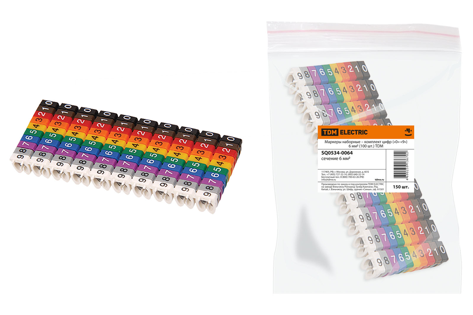 Применение:В промышленных установках.На объектах электроснабжения.В электрощитах. Материалы:Изготовлены из негорючего полиамида (PA66), устойчивого к температурным воздействиям и действию агрессивных сред (масла, смазочные материалы и т. д.).Преимущества:Боковые штифты позволяют создать ровные группы маркеров на кабеле.Быстрое и надежное крепление маркеров на кабеле. Международная система цветовой кодировки маркеров.Открытый профиль маркера позволяет производить установку на уже подключенные провода. Назначение:Для разметки кабеля в распределительных щитах, местах подключения и т. д. Упаковка:Маркер наборный - символ (100 шт.) по 10 шт.Маркеры наборные комплект цифр (100 шт.) по 10 шт.