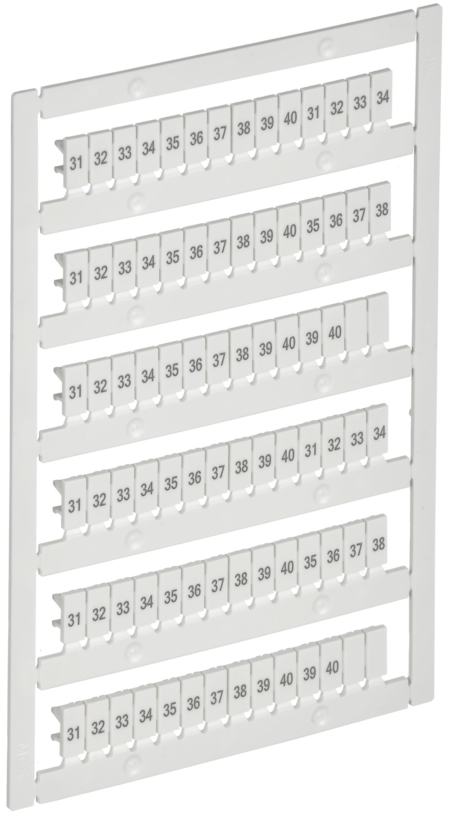 Маркеры ARMAFIX используются для маркировки рядов клеммных колодок ARMAFIX в системах распределения. Устанавливаются в соответствующие пазы клеммы. Выполнены в виде пластин. Каждая мини пластина может отсоединяться друг от друга. Совместимы с клеммами ARMAFIX различных серий. На маркерах нанесены обозначения цифровые символы, указанные в описании артикула. Печать выполнена способом, который обеспечивает долговечную и нестираемую маркировку. Изготавливаются из поликарбоната.