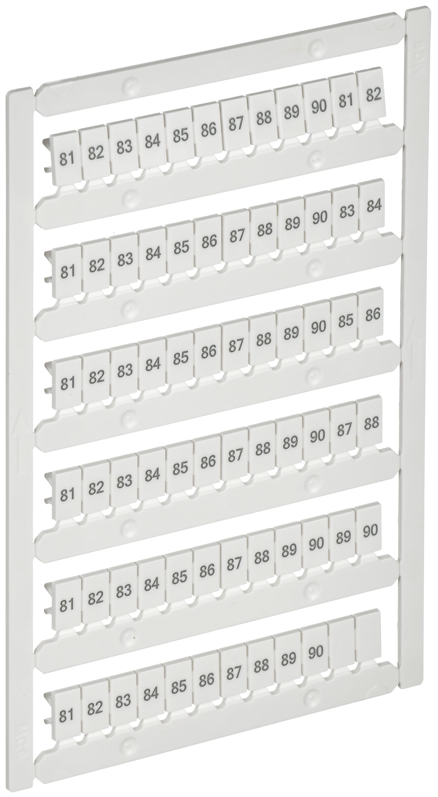 Маркеры ARMAFIX используются для маркировки рядов клеммных колодок ARMAFIX в системах распределения. Устанавливаются в соответствующие пазы клеммы. Выполнены в виде пластин. Каждая мини пластина может отсоединяться друг от друга. Совместимы с клеммами ARMAFIX различных серий. На маркерах нанесены обозначения цифровые символы, указанные в описании артикула. Печать выполнена способом, который обеспечивает долговечную и нестираемую маркировку. Изготавливаются из поликарбоната.