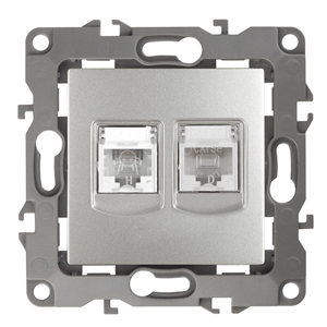 Мех-м с накладкой для подкл. ср-в связи и выч. техники с/у rj11+rj45 пластик алюминий декор d 1/1 IP20 ЭРА 12