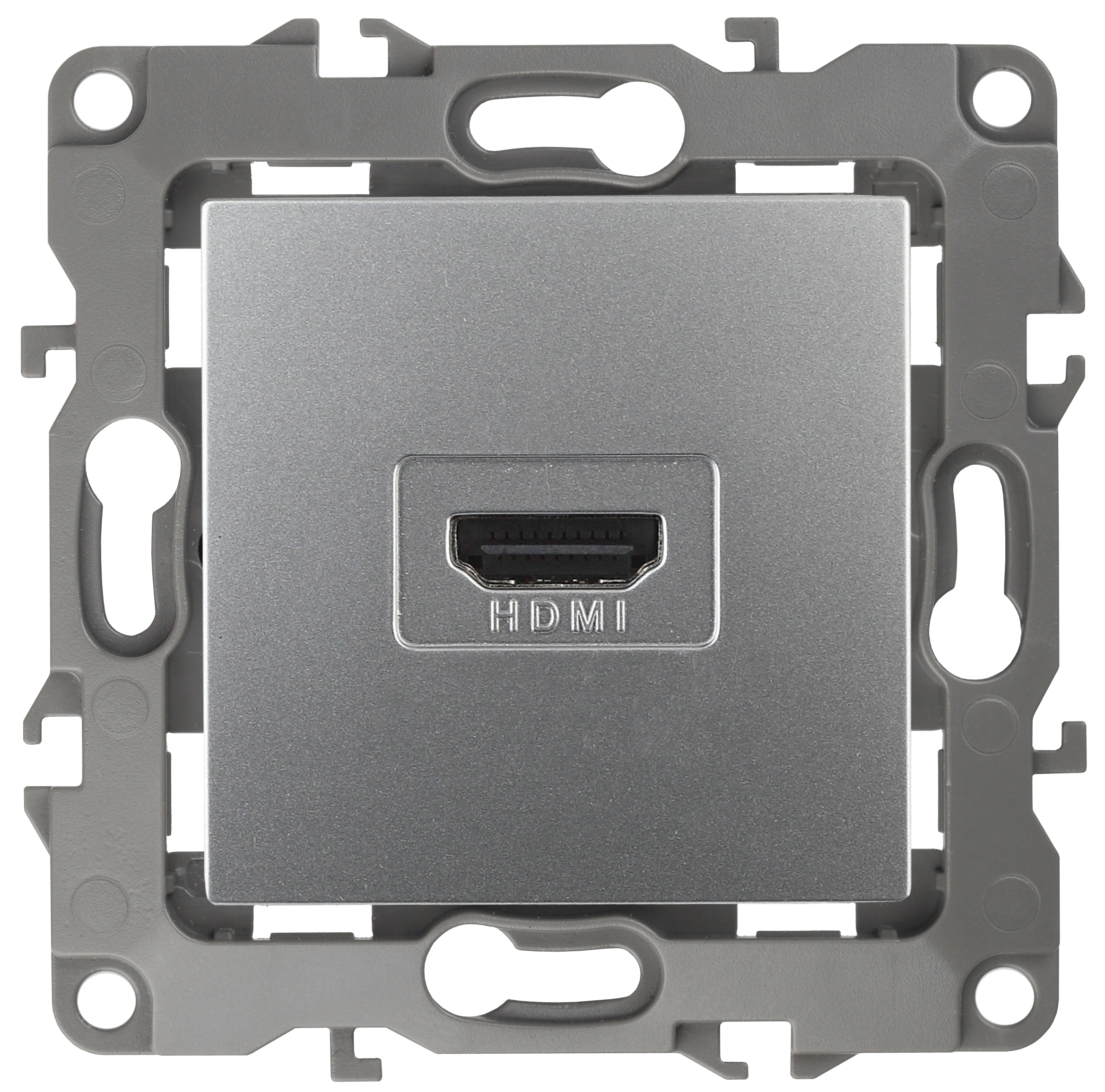 Розетка HDMI серии Эра 12 скрытой установки механизм цвет алюминий 12-3114-03. Сделана из поликарбоната. Монтаж в подрозетник производится и на лапки, и на винты. Рамки приобретаются отдельно. Рамки Эра 12: 1 пост 12-5001-хх, 2 поста 12-5002-хх, 3 поста 12-5003-хх, 4 поста 12-5004-хх, 5 постов 12-5005-хх. Рамки Эра 12 Сатин: 1 пост 12-5101-хх, 2 поста 12-5102-хх, 3 поста 12-5103-хх, 4 поста 12-5104-хх, 5 постов - 12-5105-хх (хх - код цвета: 01-белый, 02-слоновая кость, 03-алюминий, 04-шампань, 05-антрацит, 06-чёрный, 07-ольха(белёный дуб-сатин), 08-вишня, 09-дуб, 10-венге, 11-сосна, 21-жёлтый, 22-оранжевый, 23-красный, 24-охра, 25-бордо, 26-лайм, 27-зелёный, 28-голубой, 29-синий).