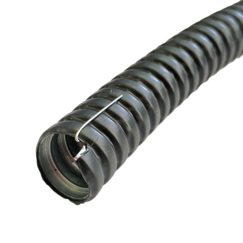 Герметичный не поддерживающий горения металлорукав в ПВХ изоляции МРПИ нг с протяжкой 15 мм, предназначен для защиты от механических повреждений электротехнических кабелей, линий связи, а также других проводниковых коммуникаций. Состоит из негерметичного металлорукава из оцинкованной стали, на внешнюю сторону которого нанесено не поддерживающее горение пиливинилхлоридное покрытие. ПВХ оболочка создаёт водонепроницаемость, стойкость к вредному воздействию окружающей среды, значительно увеличивает прочность на разрыв, защищает от поражения электрическим током. Стальная проволока (протяжка или зонд) внутри металлорукава, обеспечивает быструю и удобную протяжку кабеля при монтаже без дополнительных приспособлений Завод электротехнической арматуры изготавливает МРПИ нг нестандартных размеров (внутренний d 70,80,90 мм) и любых цветовых оттенков под заказ. Условный проход Внутренний диаметр D1 Внешний диаметр D2 Шаг навивки F Прочность на разрыв, Н 15 мм 14.7 18.7 6.3 150