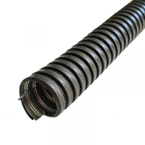 Герметичный не поддерживающий горения металлорукав в ПВХ изоляции МРПИ нг с протяжкой 25 мм, предназначен для защиты от механических повреждений электротехнических кабелей, линий связи, а также других проводниковых коммуникаций. Состоит из негерметичного металлорукава из оцинкованной стали, на внешнюю сторону которого нанесено не поддерживающее горение пиливинилхлоридное покрытие. ПВХ оболочка создаёт водонепроницаемость, стойкость к вредному воздействию окружающей среды, значительно увеличивает прочность на разрыв, защищает от поражения электрическим током. Стальная проволока (протяжка или зонд) внутри металлорукава, обеспечивает быструю и удобную протяжку кабеля при монтаже без дополнительных приспособлений Завод электротехнической арматуры изготавливает МРПИ нг нестандартных размеров (внутренний d 70,80,90 мм) и любых цветовых оттенков под заказ. Условный проход Внутренний диаметр D1 Внешний диаметр D2 Шаг навивки F Прочность на разрыв, Н 25 мм 23.7 27.5 7.3 200