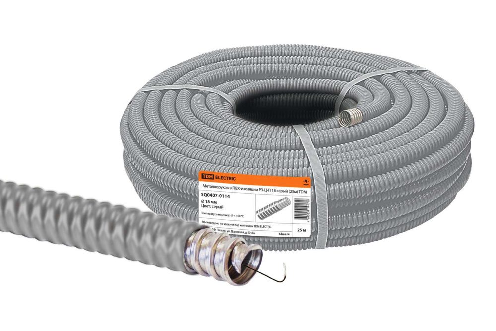 Металлорукав в ПВХ-изоляции РЗ-Ц-П 18 серый TDM /25