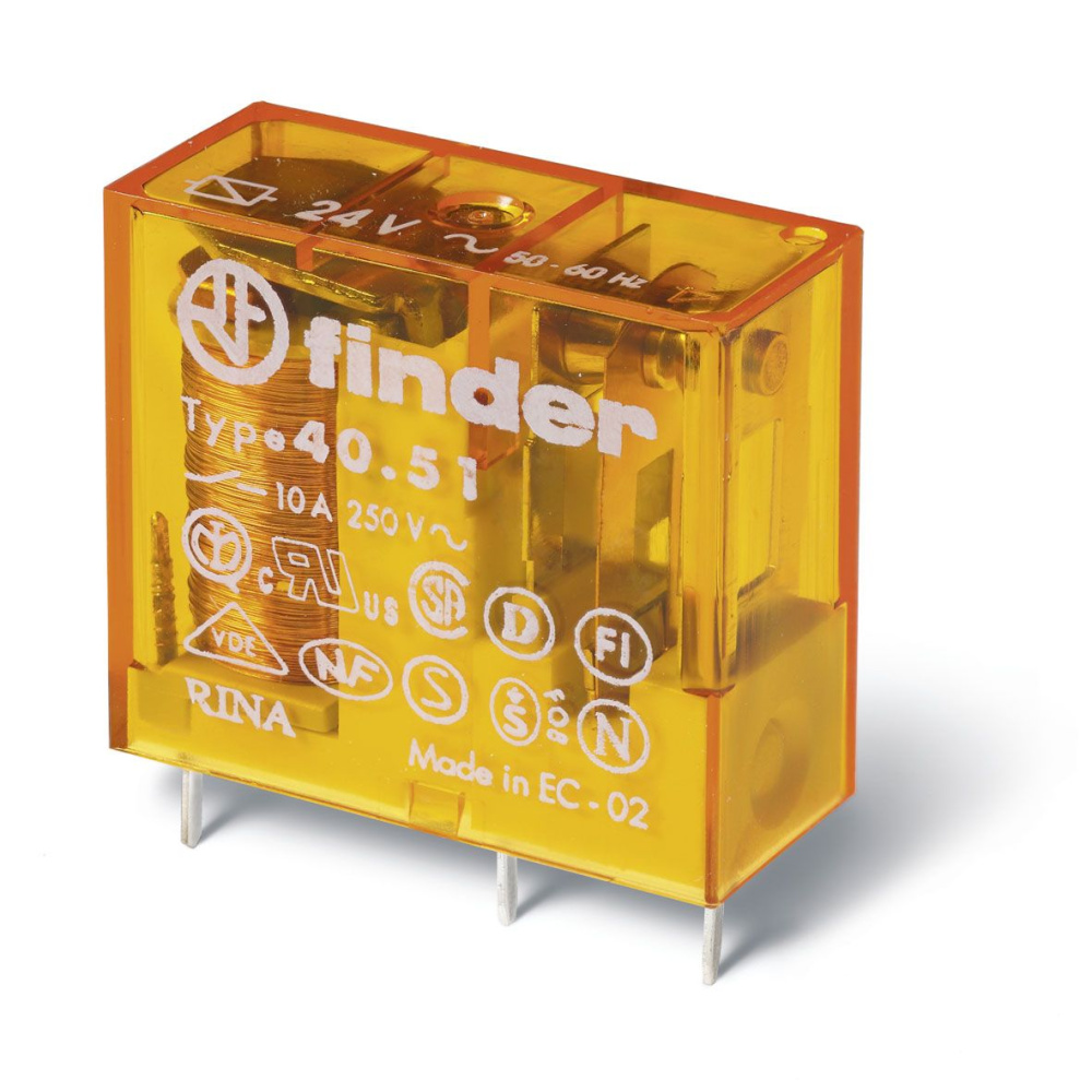 Миниатюрное PCB-реле, выводы с шагом 5мм, Контакты AgNi, 1CO 10A, катушка АС Finder
