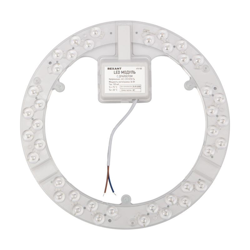 Светодиодный модуль с линзами и драйвером REXANT используется в качестве источника света для настенно-потолочныx светильников.Возможна установка в светильники как с пластиковыми, так и со стеклянными плафонами.