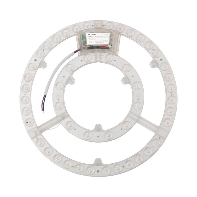 Светодиодный модуль с линзами и драйвером REXANT используется в качестве источника света для настенно-потолочныx светильников.Возможна установка в светильники как с пластиковыми, так и со стеклянными плафонами.