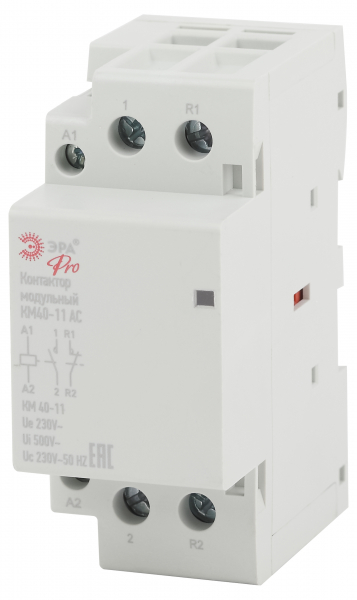 Модульные контакторы представляют из себя контактор в классическом корпусе модульного оборудования. Он состоит из неподвижных контактов, подвижных контактов, которые закреплены в подвижной части магнитной системы. Неподвижная часть магнитной системы закреплена жестко в корпусе КМ. Пружина препятствует смыканию контактов. При подаче напряжения на катушку управления в магнитной системе контактора возникает магнитное поле, которое, преодолевая сопротивление пружины, смыкает магнитную систему и замыкает контакты. При отключении напряжения с катушки управления пружина размыкает контакты. Возможна коммутация алюминиевым и медным проводом.