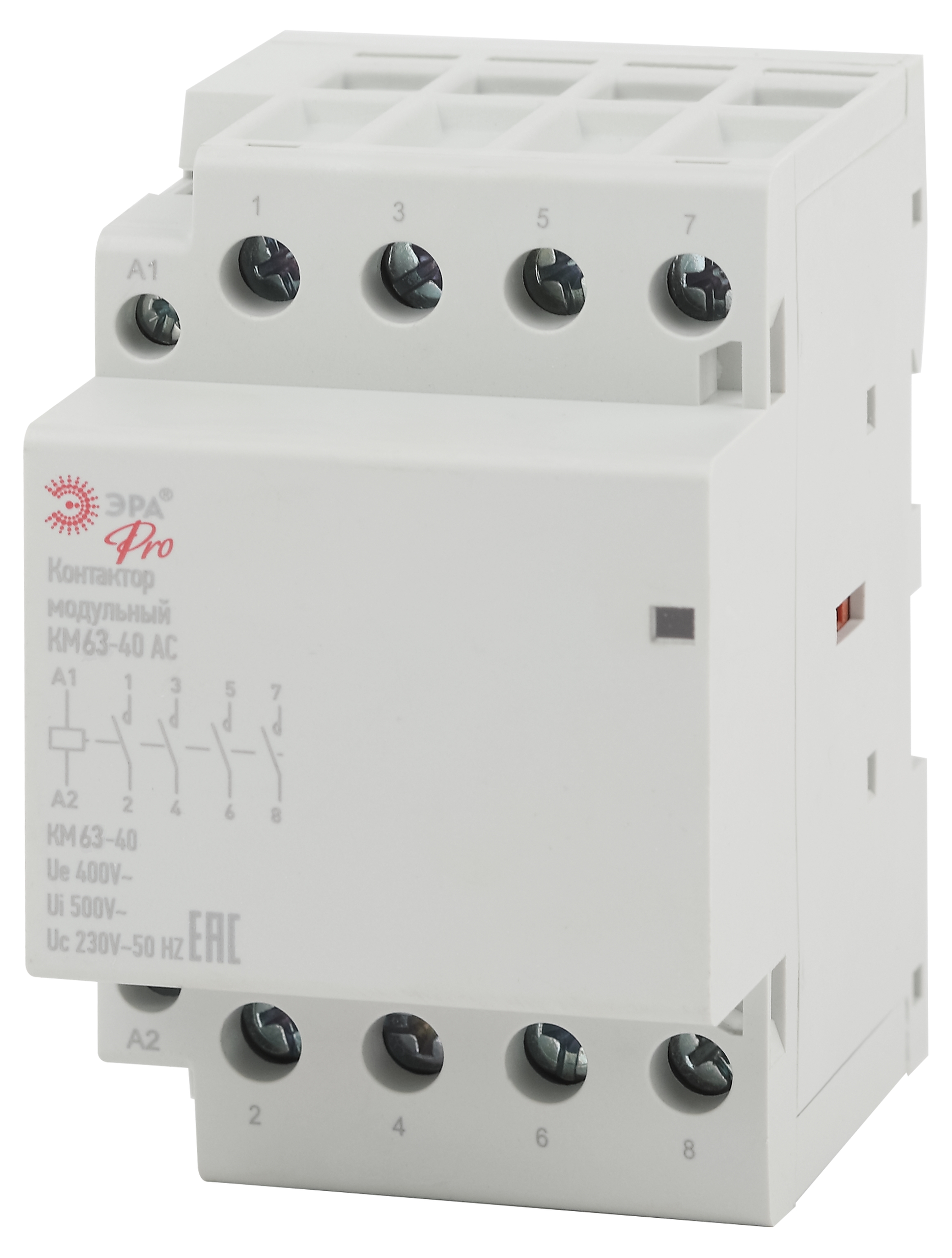 Модульный контактор для распределительного щита 63А 400В напряжение управления 230В 14490Вт 0ВА ЭРА (Энергия света) Pro