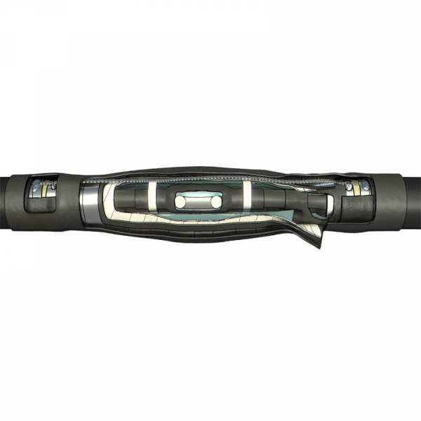 Термоусаживаемая соединительная муфта 3СТп 10 предназначены для соединения 3-х жильных силовых кабелей с бумажной пропитанной изоляцией на напряжение до 10 кВ. Данные муфты устанавливаются как в земле, так и на воздухе на вертикальных и других кабельных трассах без ограничения разности уровней. Термоусаживаемый материал, составляющий основу муфты, изготавливается по специальной технологии из термопластов. В результате радиационной обработки материал приобретает новые эксплуатационные и технологические свойства, главное из которых - способность уменьшаться в объеме при нагревании при сохранении изначальной формы. Для герметизации разделки используется маслостойкий герметик в корешок перчатки. Для выравнивания поля на соединитель применяется пластина выравнивания поля. Для герметизации пустот используется межфазный заполнитель. Установка межфазной распорки между жилами кабеля обеспечивает дополнительную изоляцию, а также является армирующим элементом, т.е. придает конструкции дополнительную жесткость. Комплект может быть представлен в двух вариантах: с соединителями и без соединителей. В комплект муфт с соединителями входят алюминиевые соединители с контактными винтами со срывающимися головками. В термоусаживаемой муфте используются две термоусаживаемые перчатки, изготовленные из электроизоляционной композиции. На внутреннюю поверхность перчатки нанесен слой легкоплавкого клея. Паяный комплект заземления включает: припой ПОС-30, припой-А, жир паяльный. Комбинированный комплект заземления включает: припой ПОС-30, жир паяльный, пружины ППД, контактные пластины (терка). Термоусаживаемые изделия обеспечивают полную герметизацию и высокие изоляционные свойства. Также они обладают высокой механической прочностью, стойкостью к химическому воздействию и влиянию окружающей среды. Все термоусаживаемые материалы, используемые при монтаже муфты, после усадки хранят свои механические свойства и достаточную электрическую прочность, не менее 20 кВ/мм при температуре от -50 до +50 C.