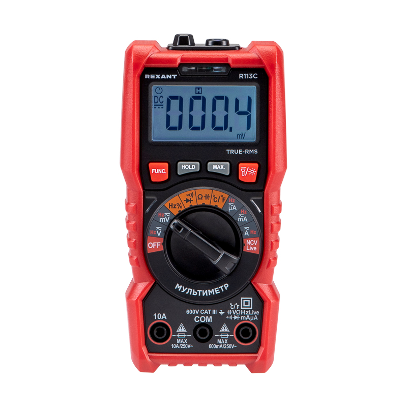 Портативный цифровой мультиметр R113C REXANT сочетает высокую точность, удобство использования и широкий спектр функций.Позволяет измерить постоянный и переменный ток, емкость, частоты и скважность, а также определить фазу и нейтраль.