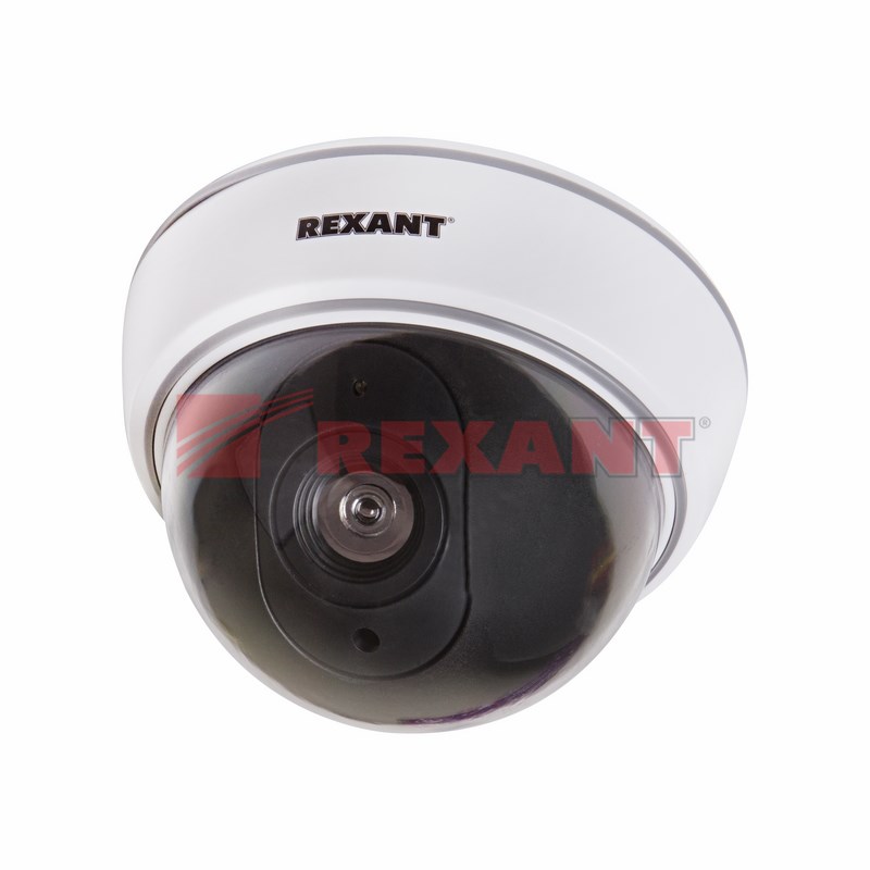 Изделие выполнено в форме купольной камеры и оснащено мигающим красным светодиодом. Благодаря такой конструкции устройство визуально неотличимо от настоящей камеры видеонаблюдения.