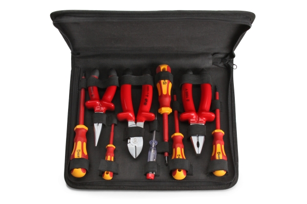 Для работы под напряжением до 1000 В;Состав набора:;диэлектрические пассатижи ЭКСПЕРТ 180 мм;диэлектрические бокорезы усиленные ЭКСПЕРТ 180 мм;диэлектрические длинногубцы ЭКСПЕРТ 160 мм;диэлектрическая отвертка: шлиц 3х75;диэлектрическая отвертка: шлиц 4х100;диэлектрическая отвертка: шлиц 5.5х125;диэлектрическая отвертка: PH1x100;диэлектрическая отвертка: PH2x100;отвертка-индикатор;Упаковка: тканевый водозащитный кофр;Габариты упаковки: 340х260х40 мм;Вес набора: 1.54 кг;