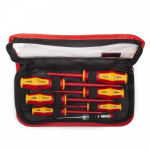 Для работ под напряжением до 1000 В;Двухкомпонентные эргономичные рукоятки с мягкими прорезиненными вставками;Маркировка на торце рукояток с обозначением типа профилей;Специальная форма рукояток, не позволяющая инструменту скатываться с наклонной поверхности;Стержни из хром-ванадиевой стали;Намагниченные вороненые наконечники;Упаковка: кофры на молнии с прозрачной крышкой;