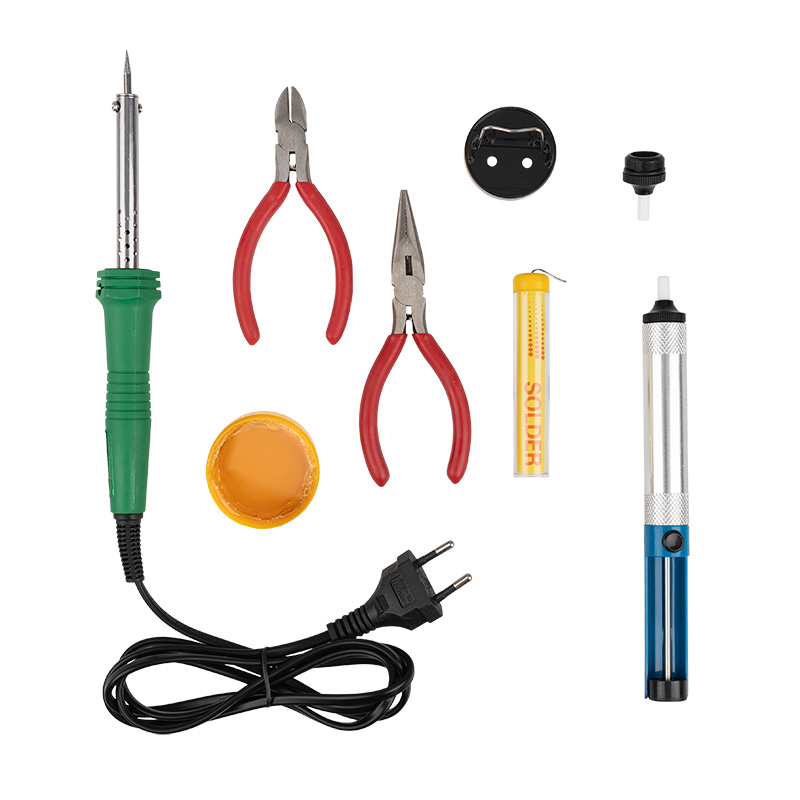 Набор для пайки № 13 (паяльник 30 Вт, подставка, канифоль, припой, бокорезы, тонкогубцы) REXANT позволит эффективно, быстро и самостоятельно отремонтировать электротеxнику или произвести монтаж оборудования.Состав набора: