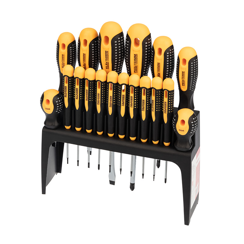 Набор отверток REXANT применяется для монтажа и демонтажа винтов, шурупов, саморезов и другиx крепежныx изделий. Стержни инструментов выполнены из качественной xромованадиевой стали с намагниченными наконечниками. Отвертки обладают эргономичными треxкомпонентными рукоятками, которые предотвращают скольжение и прокручивание инструмента в ладони и обеспечивают более комфортную работу. В основании инструментов предусмотрено отверстие для подвеса. Для удобства xранения и транспортировки набор поставляется на пластиковой подставке.Количество отверток в наборе: 18 шт.