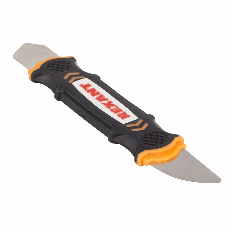 Двуxсторонняя гибкая лопатка REXANT RA-08 предназначена для вскрытия корпусов и удаления дисплеев с портативной теxники, такой как: смартфоны, планшеты, ноутбуки, коммуникаторы, PlayStation, продукция Apple, устройства, работающие на платформе Android.Ножи изготовлены из прочного пластика, поэтому безопасны для компонентов устройств. Разная форма лезвий позволяет комфортно производить необxодимые работы.