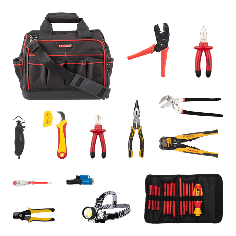 Набор инструментов для электрика REXANT состоит из 21 предмета и позволяет провести весь цикл электромонтажа до 1000В.В наборе собраны инструменты для зачистки кабеля, обжима клемм и безопасного подключения к щиту, а также диэлектрические отвертки с 14 шлицами, которые подойдут к любому оборудованию.