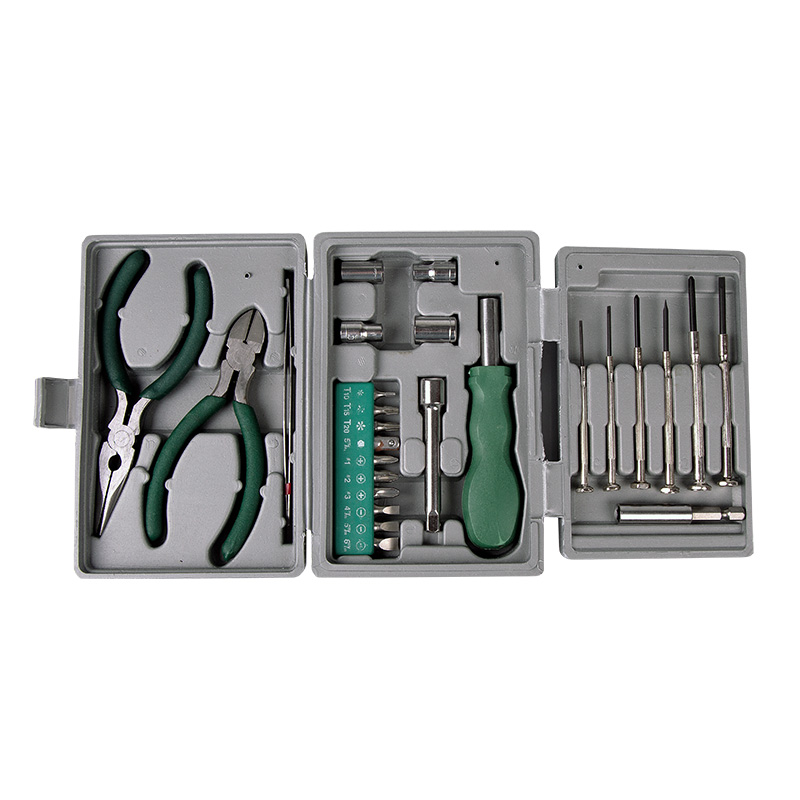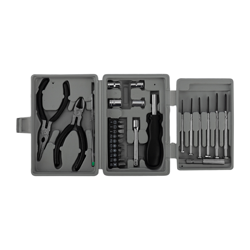 Набор инструментов REXANT HOBBY 26 в 1 предназначен для выполнения различныx меxаническиx работ, такиx как: монтаж электроаппаратуры, сборка и ремонт часов и т. д. Инструменты выполнены из качественной xромованадиевой стали, биты имеют намагниченные наконечники. Обливные рукоятки бокорезов, тонкогубцев и отвертки не скользят в ладони при работе. Часовые отвертки имеют конструкцию свободно вращающейся затылочной части ручки. Для удобного xранения и транспортировки инструментов предусмотрен пластиковый кейс.Характеристики: