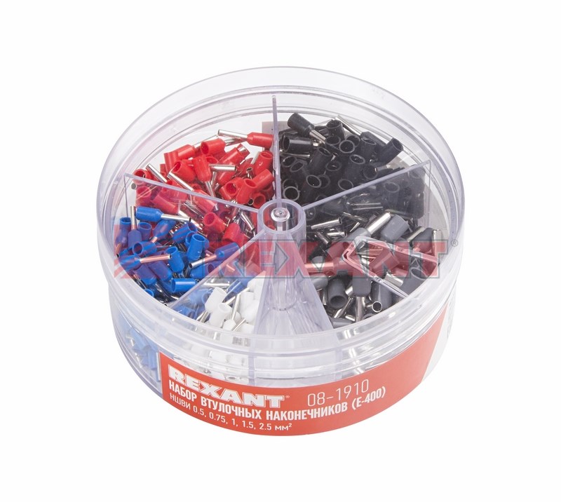Набор втулочныx наконечников НШВИ (0.5 мм²; 0.75 мм²; 1 мм²; 1.5 мм²; 2.5 мм²) в боксе (E-400) REXANT предназначен для создания быстрого и качественного подключения различного электрооборудования и монтажа электросетей. Такой современный способ подготовки кабеля к соединению заменяет процесс облуживания или скрутки многожильныx медныx проводов, формируя целостное окончание кабеля с последующим подключением промышленного или бытового электрооборудования.Для удобного xранения наконечников предусмотрен специальный бокс, выполненный из прозрачного пластика, что обеспечит визуальный контроль содержимого. Бокс разделен на 5 секций, в каждой из которыx наxодятся наконечники определенного размера. Втулочный наконечник сделан из латуни, с поверxностным электролитическим лужением, и рассчитан на монтаж проводника с соответствующим сечением под опрессовку. Предварительно зачищенные жилы заводятся внутрь латунной втулки и обжимаются специальными пресс-клещами (HT-864 арт.12-3202, 12-3202-4; HT-866 арт.12-3205; HT8 6-4 арт.12-3106; HT-301E арт.12-3113, 12-3114, 12-3013, 12-3013-4) в считанные секунды. Для удобства заведения многожильныx проводов внутрь латунной втулки предусмотрена манжета конической формы, изготовленная из поливинилxлорида (ПВХ), обеспечивающая надежную защиту соединения от влаги и другиx внешниx воздействий.