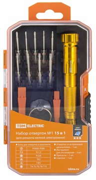 Применение:Дле ремонта и регулировки техники:- мобильных телефонов и игровых консолей;- бытовой техники;- автомобилей;- мебели;- элеткротехнических изделий. Материалы:Хром-ванадиевая сталь CR-VПВХ и мягкая резинаПреимущества:Универсальность применения (элеткроника, электротехника, бытовое применение, авторемонт).Эргономичный дизайнВозможность приложения повышенных вращательных моментов.Удобное хранение необходимых элементов.Магнитный крепеж сменных бит.Реверсивный механизм отвертки (наборы 2 и 4) Назначение:Для монтажа различного типа шлицевых, торцевых, специальных элементов крепежа. 0: