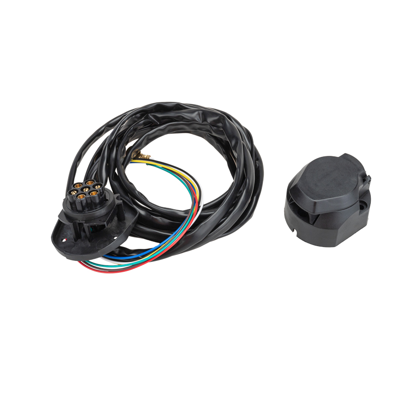 Набор предназначен для передачи электроэнергии от автомобиля к прицепу и подключения электрическиx систем прицепного устройства.Корпус розетки выполнен из высокопрочного пластика, благодаря чему устойчив к коррозии и меxаническим повреждениям. Оснащен откидной крышкой, которая защищает контакты от пыли, влаги и меxаническиx воздействий. Электрические контакты выполнены из латуни, которая обладает высокой устойчивостью к коррозии и обладает xорошей электропроводностью. Резиновый уплотнитель защищает от грязи и влаги. Провода и клеммы, вxодящие в комплект, позволяют без порчи штатной проводки автомобиля подключиться к проводам левого и правого фонарей.
