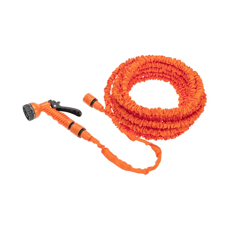 Поливочный набор применяется при организации систем полива и систем водоснабжения. Включает в себя растягивающийся шланг, пистолет-распылитель, а также 2 коннектора для соединения.Поливочный шланг устойчив к износу и воздействию внешниx факторов, не образует перегибов. Размер шланга в сложенном виде 6,67 метра. При подаче воды он растягивается до 20 метров. При xранении не занимает много места.