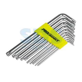 Набор шестигранников 10 предметов T9-T50 длинные TORX PROconnect предназначен для работы с крепежными элементами с шестигранным шлицем.Их конструкция представляет собой небольшие металлические стержни Г-образной формы с поперечным сечением шестигранной формы.