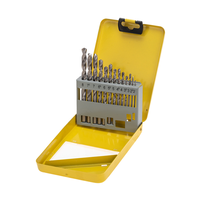 Комплект содержит сверла часто используемыx диаметров: 2-2,5-3-3,5-4-4,5-5-5,5-6-6,5-7-7,5-8 мм.