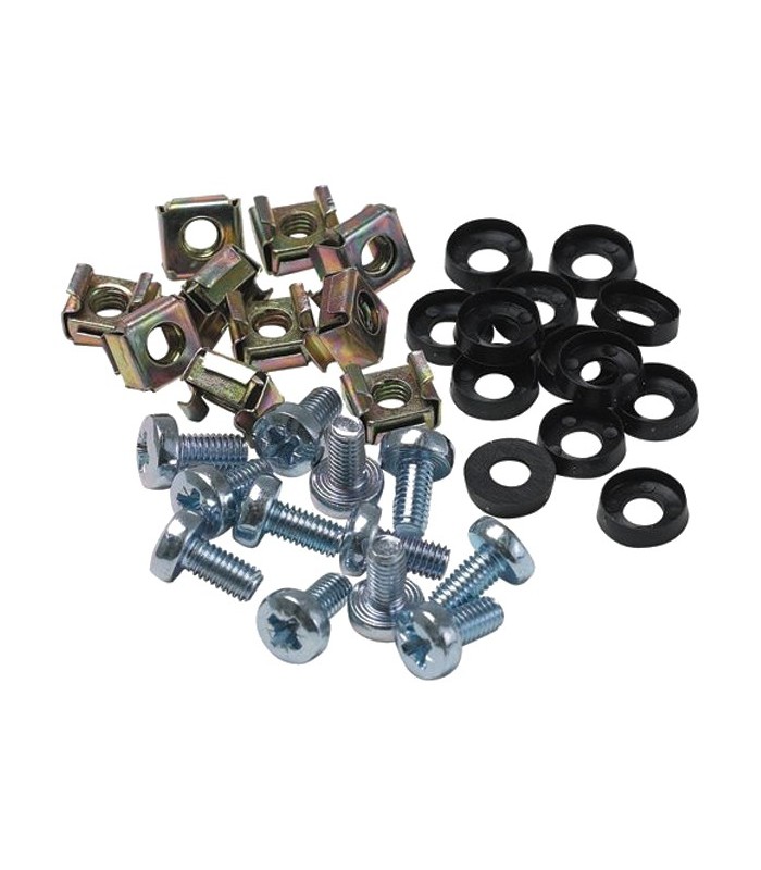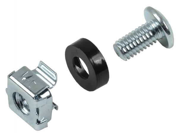 Набор винт-шайба-гайка необходим для крепления оборудования на монтажные профили шкафов и стоек.Гайки в наборе имеют квадратную форму и специальные "лапки", прочно фиксирующие их в квадратном отверстии монтажных профилей, что облегчает установку оборудования, т.к. нет необходимости держать гайку руками. Также в наборе предусмотрены пластиковые шайбы, предотвращающие повреждение оборудования при затягивании винтов в гайку.