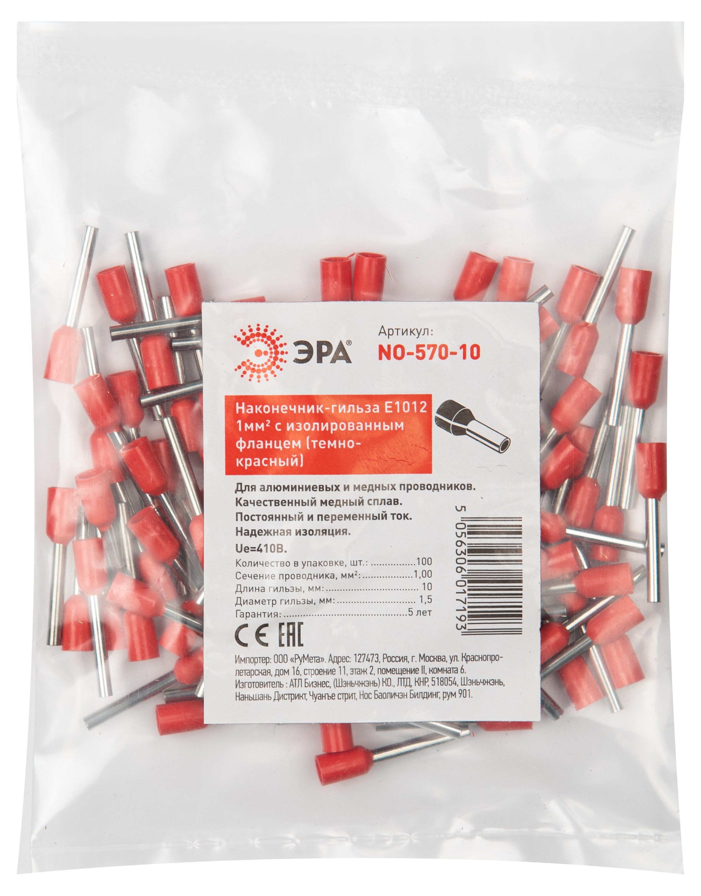 Наконечник-гильза втулочный 1мм² медь красный изолированный ЭРА (Энергия света)