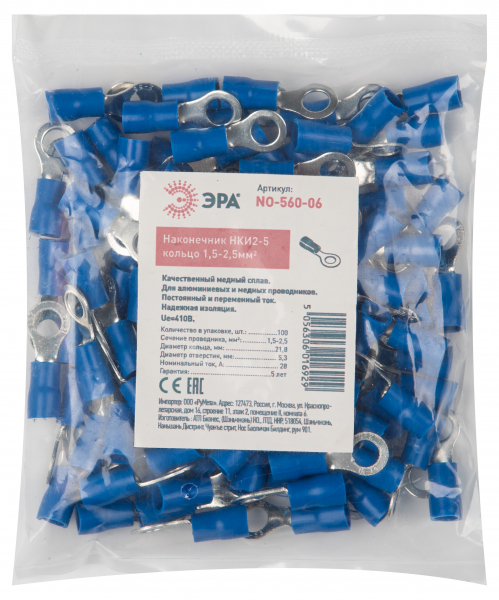 Наконечник кольцевой изолированный ø 5.3 мм 1.5-2.5 мм² (НКи 2.5-5/НКи2-5) синий REXANT /100