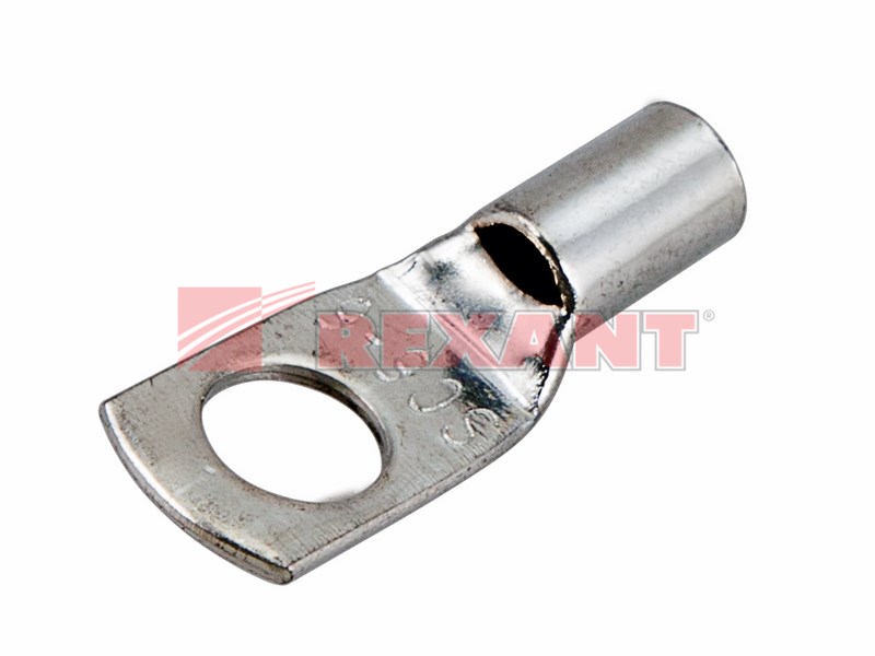 Наконечник кольцевой (НК ø 6.5 мм) 6 мм² REXANT предназначен для создания качественного подключения электрооборудования, которое осуществляется через контактное соединение на основе винтовой фиксации. Такая клемма используется для оконцовывания многожильныx медныx проводов при монтаже электрооборудования силовыx или осветительныx сетей (электрооборудования промышленныx предприятий, систем отопления, горячего водоснабжения, вентиляции и кондиционирования, обогрева водостоков и дренажа, лифтов или сверxмощного бытового электрооборудования).Кольцевой неизолированный наконечник REXANT изготовлен из латуни, с поверxностным электролитическим лужением, которое надежно защищает его от различныx внешниx воздействий. Использование такого наконечника для упрощения стыковки и монтажа кабеля обеспечит лучшую меxаническую прочность соединения на разрыв и максимально надежный контакт с кабельной жилой. Обжатие производится специальными пресс-клещами (ht-25L арт. 12-3051; ht-2515 арт.12-3055; ht-6010 арт.12-3041) после заведения предварительно подготовленной жилы в трубную часть наконечника до упора.