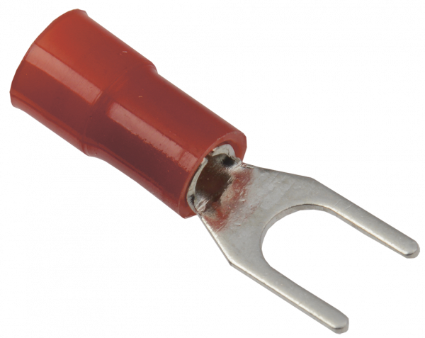 Наконечник вилочный предназначен для оконцевания опрессовкой проводов с медными жилами и используется при монтаже электрических узлов, где предусмотрено соответствующее контактное соединение на основе винтовой фиксации. Провести полный демонтаж крепежного соединения возможно, лишь ослабив винтовую фиксацию.