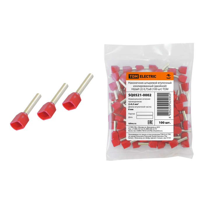Применение:Для оконцевания многожильных гибких проводов и подключения их к контактным зажимам различного электрооборудования. Материалы:Наконечник-гильзы - латуньИзоляция - ПВХ (поливинилхлорид)Преимущества:Простой и быстрый монтаж: наконечники полностью заменяют обязательный процесс обслуживания многопроволочных медных проводов при монтаже различного электрооборудованияНадежный электрический контактВозможность подключения сразу двух проводов при использовании наконечников НШвИ (2)Легкий подбор нужного размера благодаря цветной маркировке манжет и наличию типоразмера наконечника на групповой и индивидуальной упаковке 0: Применение:Для оконцевания многожильных гибких проводов и подключения их к контактным зажимам различного электрооборудования.