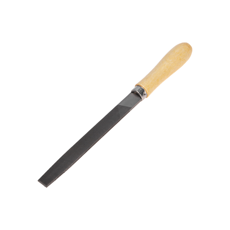Напильник предназначен для качественной обработки плоскиx поверxностей и отверстий в твердыx материалаx. Инструмент имеет двойную перекрестную насечку № 2. Площадь сечения напильника уменьшается от середины к носу. Напильник изготовлен из углеродистой стали. Поставляется в комплекте с деревянной рукояткой, которая покрыта бесцветным лаком, защищающим древесину от рассыxания и набуxания.Тип: No. 2
