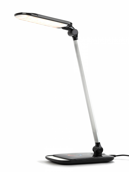 Настольный светильник ЭРА NLED-460-14W-BK-S со светодиодами (LED) в качестве источников света. Оснащен сенсорным управлением, возможностью выбора цветовой температуры (теплый, нейтральный или холодный свет). Плавный диммер для регулировки яркости. Наклон металлической стойки и поворот плафона относительно стойки позволяют удобно направлять свет. Складная конструкция для оптимального хранения. Современный актуальный дизайн с высоким качеством исполнения, с металлической стойкой. В основание светильника встроен LED ночник с независимым выключателем и выбором режима работы: режим цветовых переходов - плавно меняет цвета; режим выбора любого цвета - светит в том оттенке, который выбран на цветовом круге (можно выбрать любой). И это еще не все преимущества. Светильник имеет встроенный USB разъем для зарядки мобильных устройств - от него очень удобно заряжать телефон или планшет, и не надо занимать розетку адаптером или искать USB порт где-то еще.