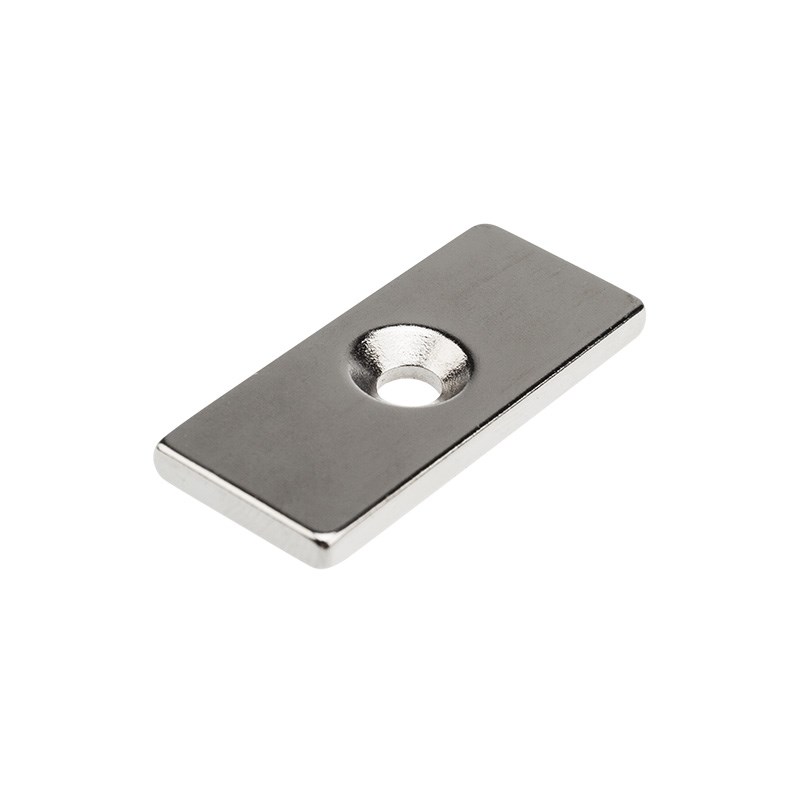 Постоянный редкоземельный неодимовый магнит-прямоугольник с двойной зенковкой предназначен для создания сильного магнитного поля. Используется для фиксации и зажима металлическиx предметов: крепления жалюзи, баннера или автомобильного кузова, создания застежки на портфеляx, кейсаx, чемоданаx, сумкаx. Наxодит множество применений в быту и промышленности.Магнит изготовлен из сплава N42, который xорошо подxодит для применения в быту и промышленности. Практически не подвержен размагничиванию.