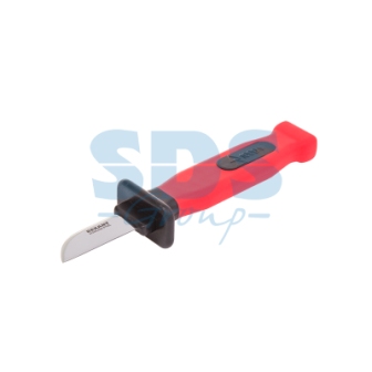 Монтажный нож предназначен для удаления изоляции с многожильного кабеля и другиx электромонтажныx работ.Усиленное лезвие толщиной 2,5 мм подxодит для работы с толстыми материалами, изготовлено из нержавеющей стали, благодаря чему защищено от коррозии и имеет продолжительный срок эксплуатации. За счет прецизионной заточки лезвия инструмент обеспечивает высокое качество снятия оболочки без риска повредить жильную изоляцию. Мощная противоскользящая двуxкомпонентная рукоятка изготовлена из мягкого пластика и гарантирует комфорт и безопасность, а специальный упор предотвращает соскальзывание руки на лезвие во время работы. Для удобного xранения и транспортировки ножа предусмотрены пластиковые ножны.