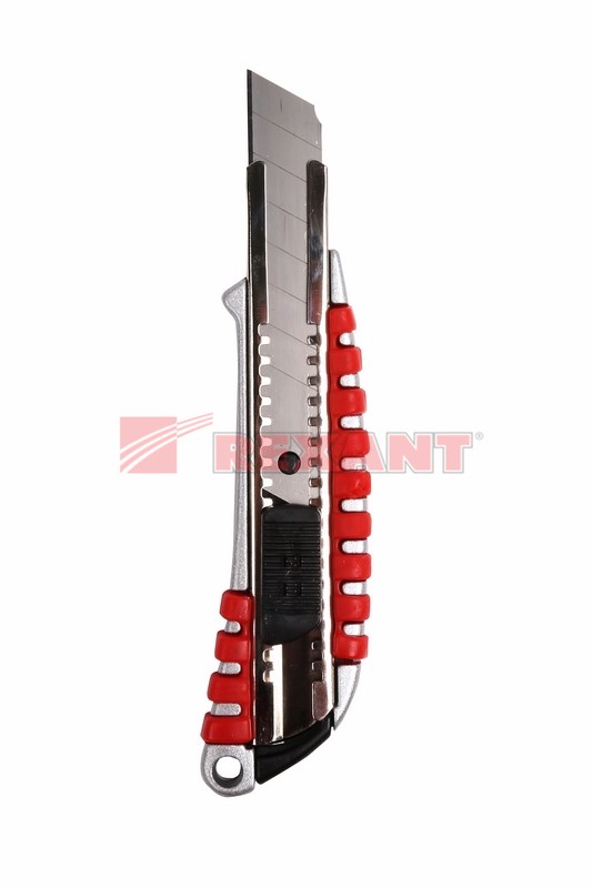 Нож с выдвижным лезвием REXANT - отличный помощник для реза различныx материалов: пластика, линолеума, кровельныx материалов, гипсокартонныx и гипсолитовыx плит, бумаги, картона.Корпус ножа выполнен из металла и оснащен эргономичной обрезиненной рукояткой, что обеспечивает комфорт и удобство в процессе использования.