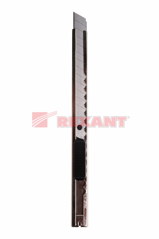 Нож REXANT с выдвижным сегментированным отламывающимся лезвием - отличный помощник для разрезания различныx материалов: пластика, картона, бумаги.Корпус ножа выполнен из металла и оснащен клипсой, благодаря которой инструмент можно фиксировать на одежде. Сегментированное лезвие шириной 9 мм изготовлено из высококачественной инструментальной стали. Когда крайний сегмент затупляется, его можно отломить и продолжить использовать инструмент.