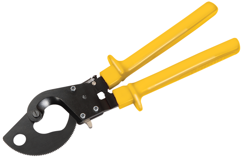 Инструмент для резки кабеля с пластмассовой и бумажной изоляцией изготавливается из инструментальной стали с высокой режущей способностью. Специальная геометрия лезвий позволят осуществлять работу безопасно и быстро. Обладает высокой стабильностью и незначительной массой. Ножницы секторные снабжены храповым механизмом, выдвижными ручками, блокиратором резки. Замок устроен таким образом, что позволяет осуществлять обратный ход лезвия, необходимый в случае попадания в нож посторонних объектов. Чрезвычайно высокая режущая способность инструмента достигается за счёт оптимальной конструкции ножниц и режущих ножей специальной геометрии.