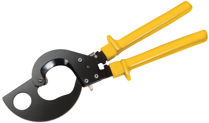 Инструмент для резки кабеля с пластмассовой и бумажной изоляцией изготавливается из инструментальной стали с высокой режущей способностью. Специальная геометрия лезвий позволят осуществлять работу безопасно и быстро. Обладает высокой стабильностью и незначительной массой. Ножницы секторные снабжены храповым механизмом, выдвижными ручками, блокиратором резки. Замок устроен таким образом, что позволяет осуществлять обратный ход лезвия, необходимый в случае попадания в нож посторонних объектов. Чрезвычайно высокая режущая способность инструмента достигается за счёт оптимальной конструкции ножниц и режущих ножей специальной геометрии.