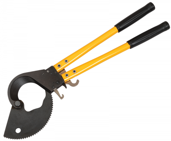 Инструмент для резки кабеля с пластмассовой и бумажной изоляцией изготавливается из инструментальной стали с высокой режущей способностью. Специальная геометрия лезвий позволят осуществлять работу безопасно и быстро. Обладает высокой стабильностью и незначительной массой. Ножницы секторные снабжены храповым механизмом, выдвижными ручками, блокиратором резки. Замок устроен таким образом, что позволяет осуществлять обратный ход лезвия, необходимый в случае попадания в нож посторонних объектов. Чрезвычайно высокая режущая способность инструмента достигается за счёт оптимальной конструкции ножниц и режущих ножей специальной геометрии.