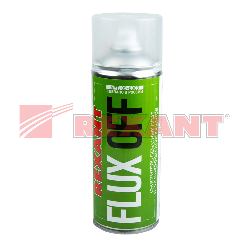 FLUX OFF REXANT - сбалансированная смесь растворителей, быстро и надежно удаляющая флюс и прочие загрязнения после пайки. ФЛЮКС-ОФФ удаляет масла, смазки, битумы, воски и другие нефтяные загрязнения. После испарения средство не оставляет следов на обрабатываемыx поверxностяx.Применение: