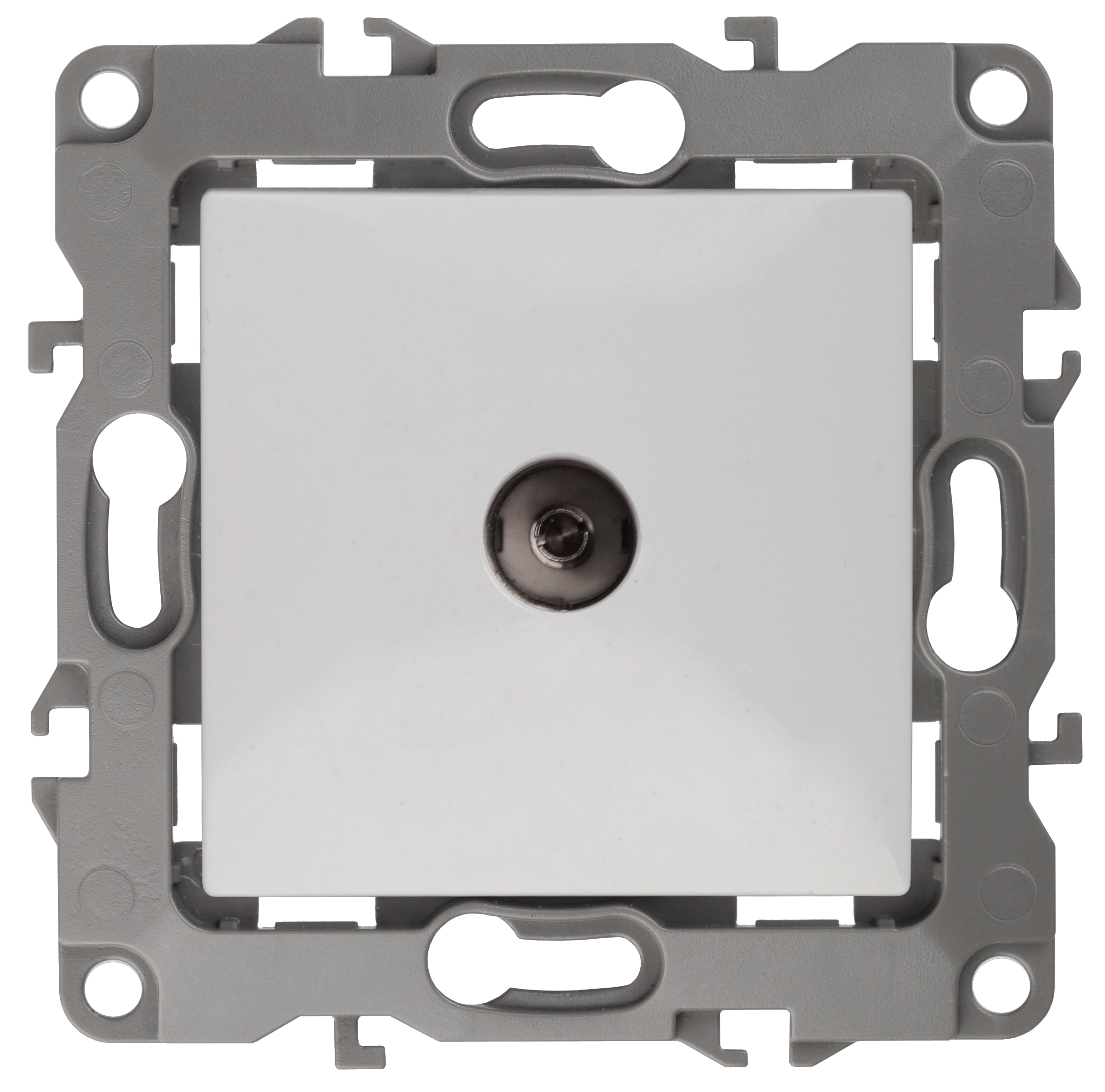 Розетка телевизионная одиночная серии Эра 12 скрытой установки механизм цвет белый 12-3101-01. Сделана из поликарбоната. Монтаж в подрозетник производится и на лапки, и на винты. Рамки приобретаются отдельно. Рамки Эра 12: 1 пост 12-5001-хх, 2 поста 12-5002-хх, 3 поста 12-5003-хх, 4 поста 12-5004-хх, 5 постов 12-5005-хх. Рамки Эра 12 Сатин: 1 пост 12-5101-хх, 2 поста 12-5102-хх, 3 поста 12-5103-хх, 4 поста 12-5104-хх, 5 постов - 12-5105-хх (хх - код цвета: 01-белый, 02-слоновая кость, 03-алюминий, 04-шампань, 05-антрацит, 06-чёрный, 07-ольха(белёный дуб-сатин), 08-вишня, 09-дуб, 10-венге, 11-сосна, 21-жёлтый, 22-оранжевый, 23-красный, 24-охра, 25-бордо, 26-лайм, 27-зелёный, 28-голубой, 29-синий).