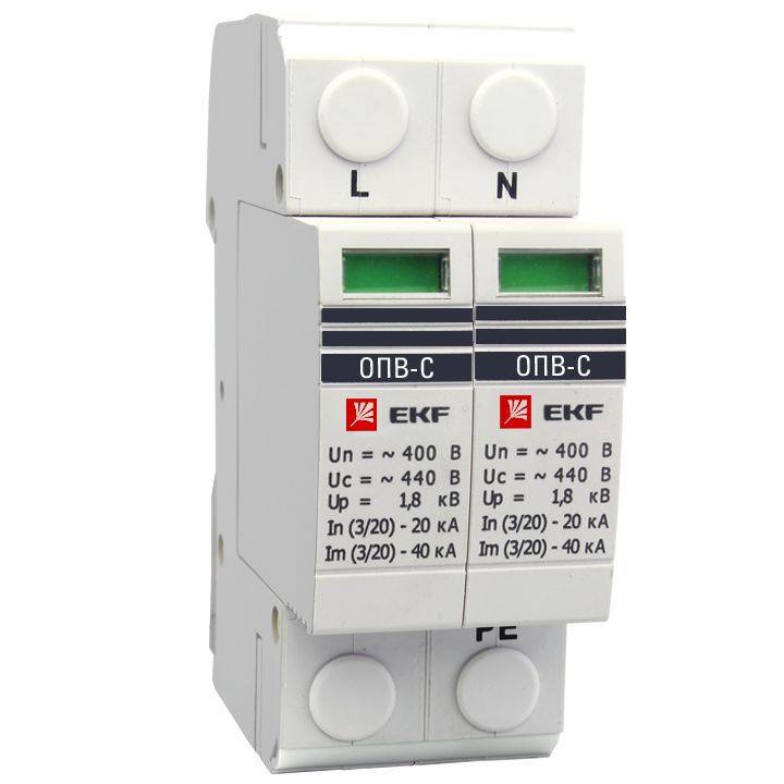 УЗИПы серии ОПВ относятся к классу II и применяются для защиты токораспределительной сети объекта от коммутационных помех или как вторая ступень защиты при ударе молнии. Тип "С" характеризуется номинальным разрядным током 20кА, максимальным разрядным током 40кА с формой волны 8/20 мкс.
