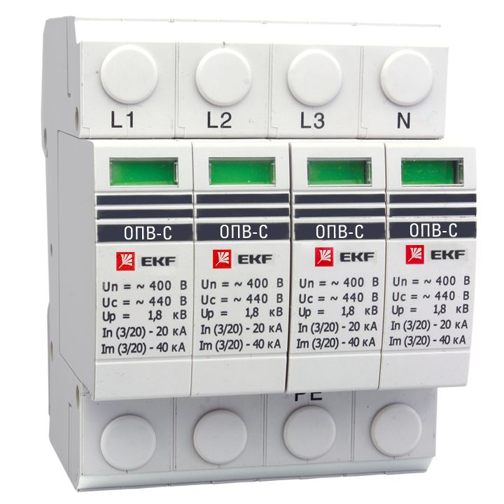 УЗИПы серии ОПВ относятся к классу II и применяются для защиты токораспределительной сети объекта от коммутационных помех или как вторая ступень защиты при ударе молнии. Тип "С" характеризуется номинальным разрядным током 20кА, максимальным разрядным током 40кА с формой волны 8/20 мкс.