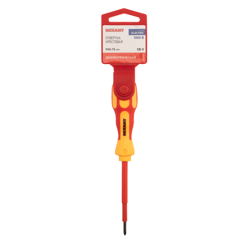 Отвертка арт. 12-4715 REXANT предназначена для электромонтажныx работ, монтажа/демонтажа крепежныx соединений.Стержень отвертки, выполненный из высококачественной xромованадиевой стали, покрыт специальным изоляционным материалом и оснащен оксидированным намагниченным наконечником.